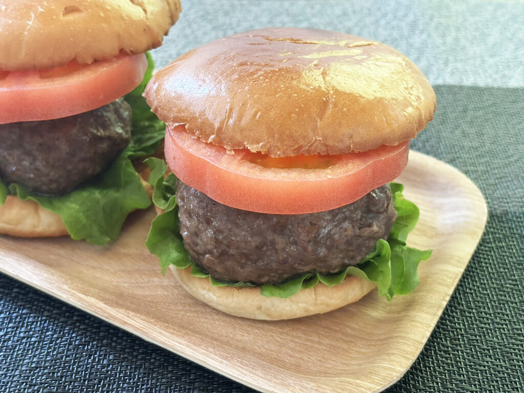 北海道産黒毛和牛肉を100%使用し、精肉店ならではのこだわりを込めたハンバーグを使った贅沢ハンバーガー